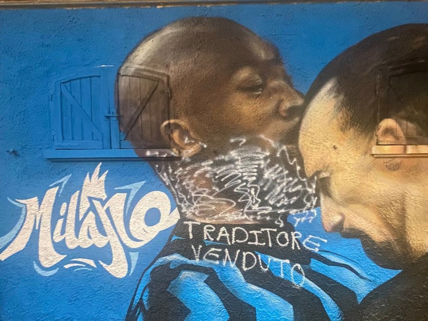 แฟนบอลบางส่วนของทีม “งูใหญ่” อินเตอร์ มิลาน สโมสรแห่ง กัลโช่ เซเรีย อา อิตาลี พ่นสเปรย์เป็นข้อความด่า โรเมลู ลูกากู อดีตกองหน้าของทีมที่ตอนนี้ย้ายไปอยู่กับ “สิงโตน้ำเงินคราม” เชลซี เจ้าของแชมป์ยุโรปปีล่าสุด